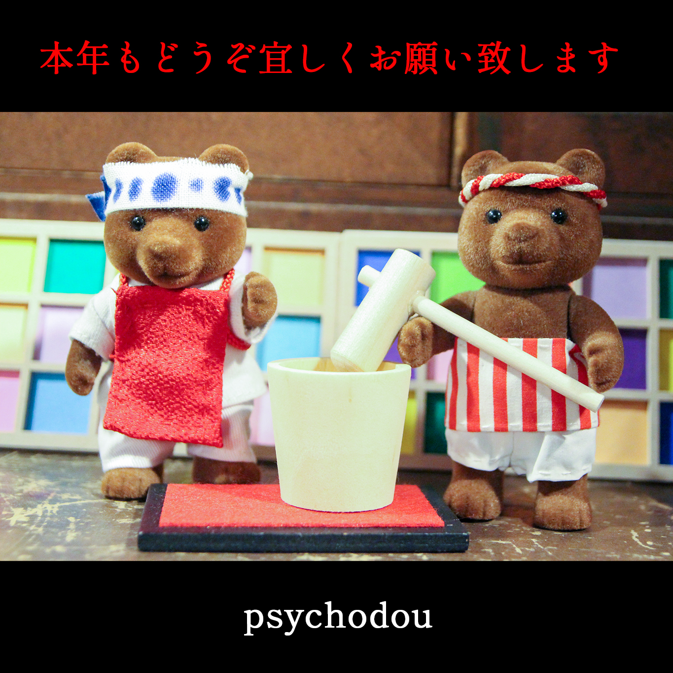 衣装は手作り、臼と杵と敷物は100均のセリア様で買いました。